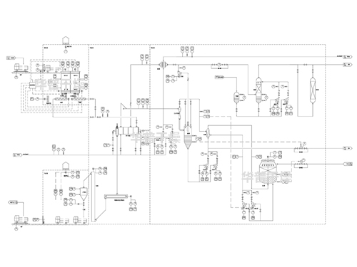 • 噴霧干燥系統(tǒng)+回轉(zhuǎn)焙燒爐系統(tǒng)+冷卻輸送系統(tǒng)